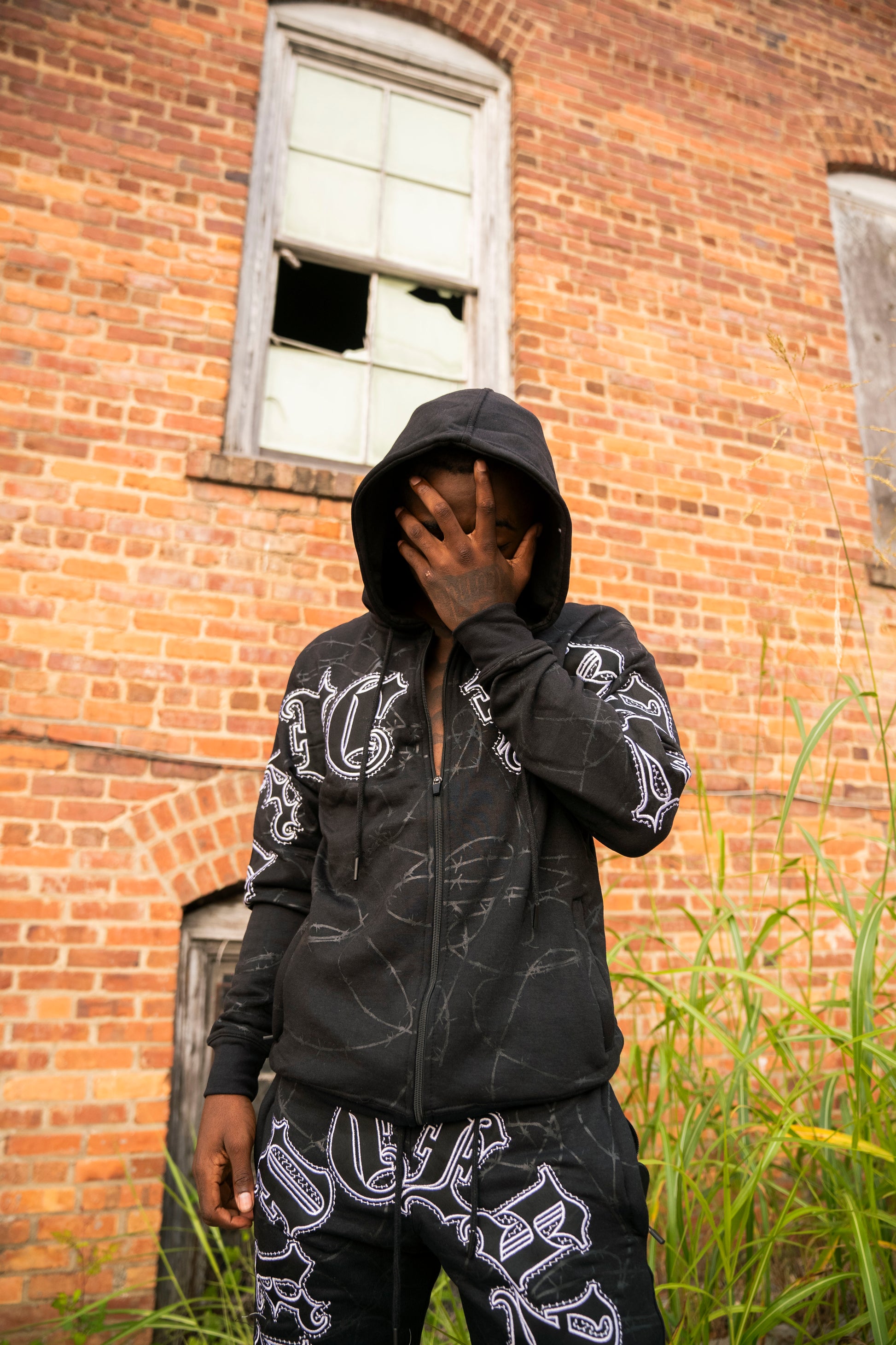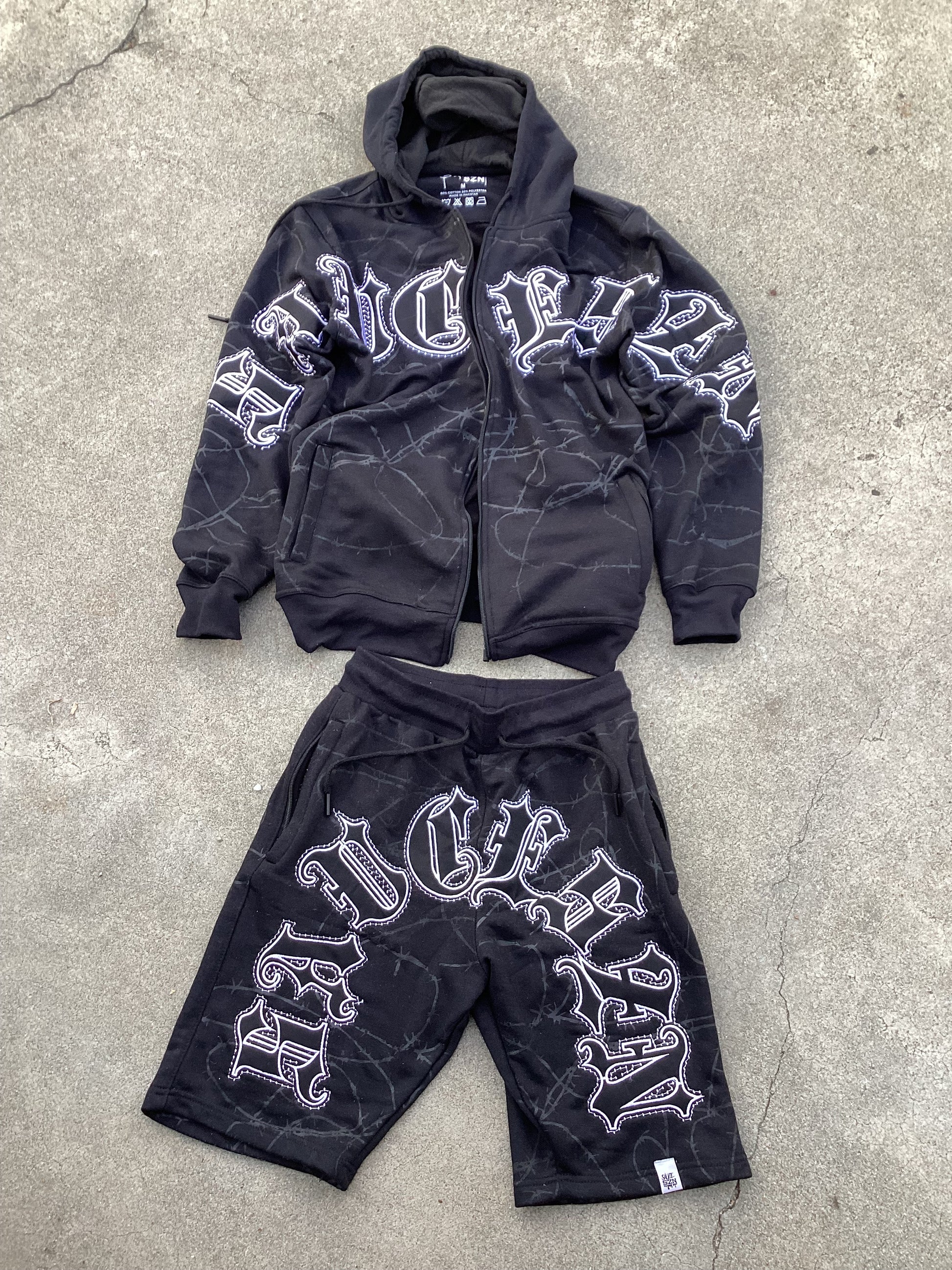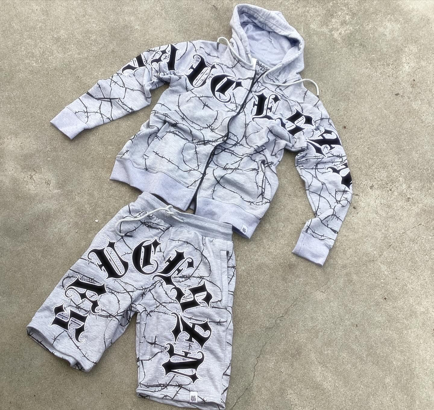 Barbwire Pattern Print with SauceSzN Embroidered on Hoodie and Shorts,Don’t Comprise On Quality- Treat Yourself To A Wardrobe Essential.